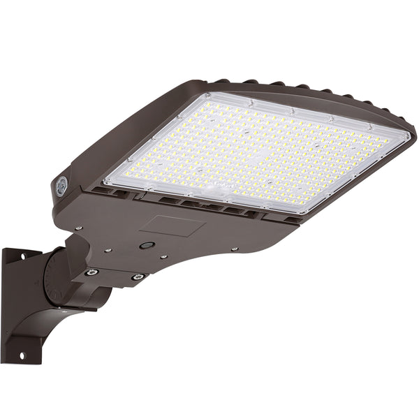 Luz LED para estacionamiento de 200 W, 27 000 lm, luz Shoebox con montaje en brazo de 5000 K