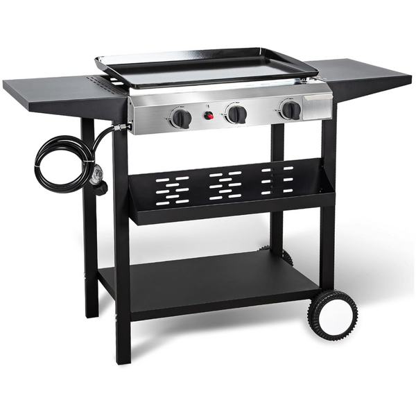Hykolity 3 Burner Flat Top Gas Griddle with Ceramic Coated Iron Pan, 30,000 BTU Outdoor Propane BBQ Griddle, Stainless Steel Barbecue Gas Grill for Camping, Tailgating, Cooking