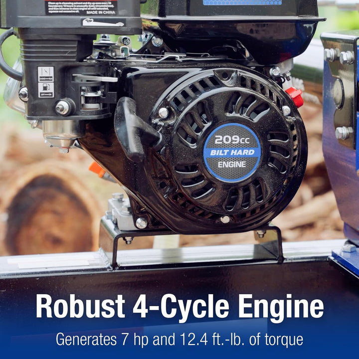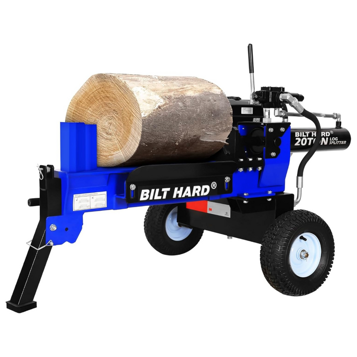 BILT HARD 20-Ton Gas Log Splitter, Hydraulic Wood Splitter with 7 HP 209cc OHV Engine, Towable Hitch, 13" Pneumatic Tires, 2 Stage Gear Pump, Steel Wedge, Firewood Splitting Machine - bilthard