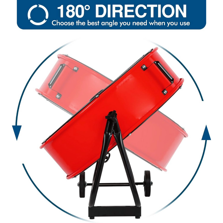 Equipped with 2 rubber wheels and 2 carry handles, this metal drum fan is easy to transport. Despite its lightweight design, this versatile fan offers an economical solution for small to medium-sized ventilation needs.