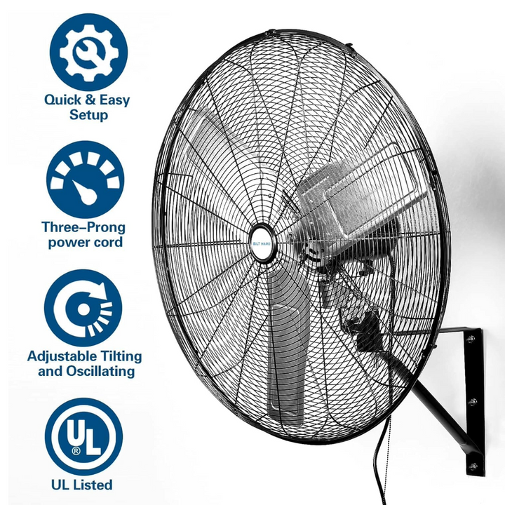 BILT HARD 30 in. 9500 CFM High Velocity Industrial Wall Fan, 3-Speed Wall Mount Oscillating Fan, Heavy Duty Shop Fan for Garage, Commercial, Warehouse, Factory, Workshops and Jobsites, UL Listed