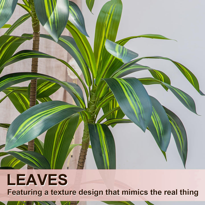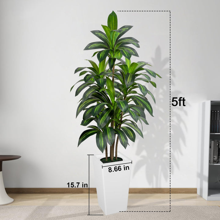 • Dracaena Artificial Tree 5ft Tall Pre Potted Dracaena Trees with White Tall Square Planter for Indoor Outdoor Home Office Decor