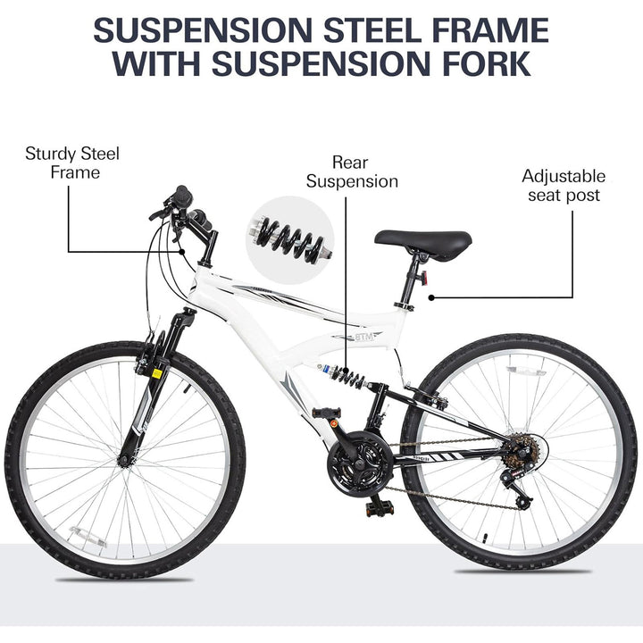 Hykolity 26-inch Full Suspension Mountain Bike in Bold White – Conquer Any Trail!