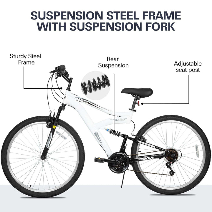 • hykolity 27.5 inch Mountain Bike MTB Outdoor Bicycle Cycling 18 Speed Sport Bikes Rider Height 64-74 inch Full Suspension for Adult Men Unisex White