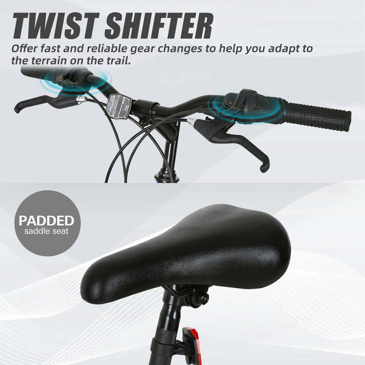 Built for rugged trails, this bike includes a safe chain guard for drivetrain protection. Its anti-slip tires deliver superior grip and effortless movement across all terrains, from rocky paths to smooth trails. The saddle is fully adjustable, allowing you to customize your riding angle for personalized comfort and support.