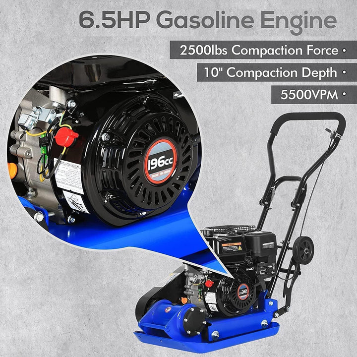 HYKOLITY 6.5HP Plate Compactor 196cc 2500lbs Force 5500 VPM 21x14.5 in Gas EPA Engine Adjustable Throttle Vibratory Ground Tamper Jumping Jack Soil