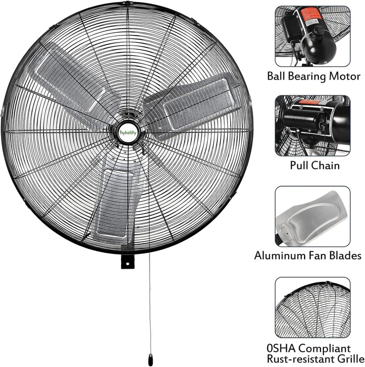 • hykolity 6300 CFM 24'' Outdoor Oscillating Wall Fan, 3-Speed High Velocity Heavy Duty Outdoor Wall Fans, Outdoor Waterproof Fans for Patios, Industrial, Commercial and Warehouse, UL Listed, 2 Pack