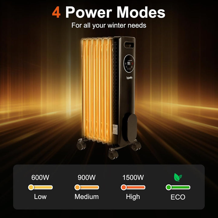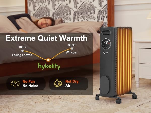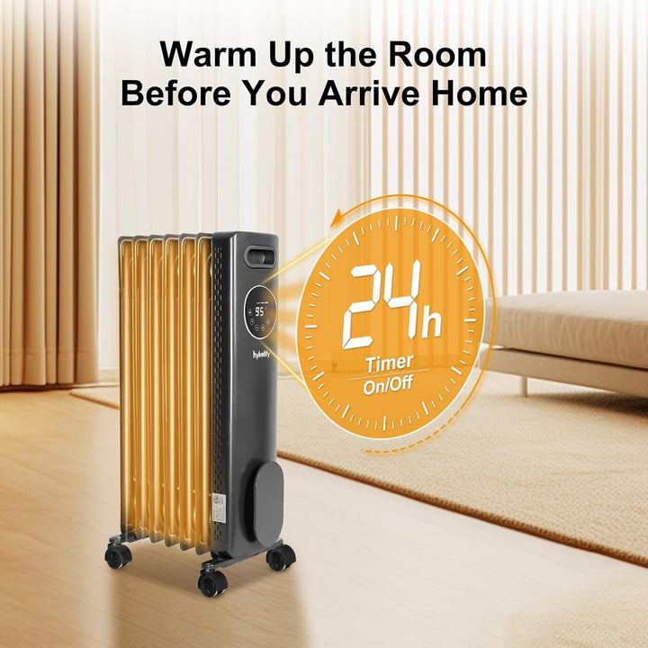 • hykolity 7fins Oil Filled Radiator Heater with Remote &24H ON OFF Timer, 4 Mode Electric Radiant Heater,Child Lock,Overheat & Tip-Over Protection, Eco,Digital Thermostat Space Heater for Indoor, Grey