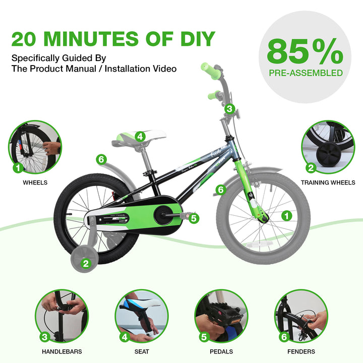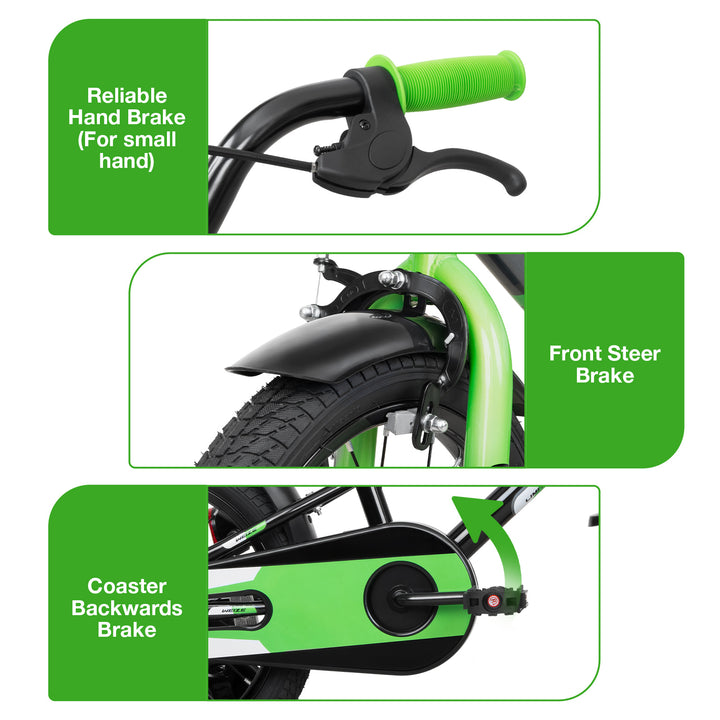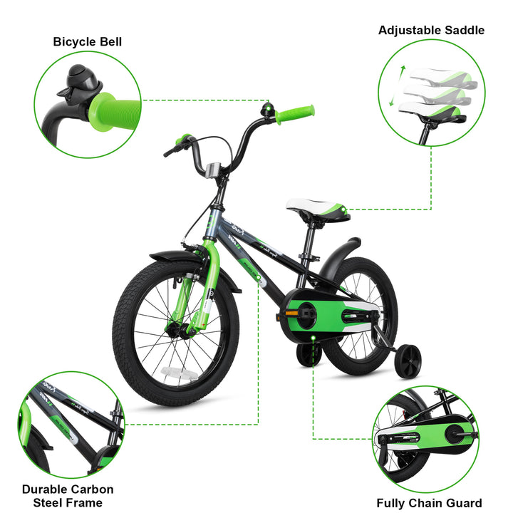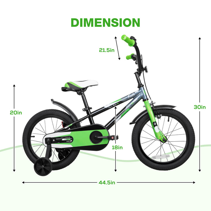 • Hykolity Kids Bike Boy Girl Bicycle 16 inch for Children Age 4-6 Height 38-48" Child Sport Bike BMX Handbar includes Training Wheel Black Green