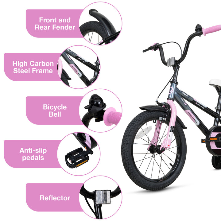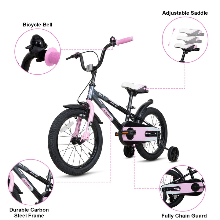 Hykolity Kids Bike Boy Girl Bicycle 16 inch for Children Age 4-6 Height 38-48" Child Sport Bike BMX Handbar includes Training Wheel Black Pink