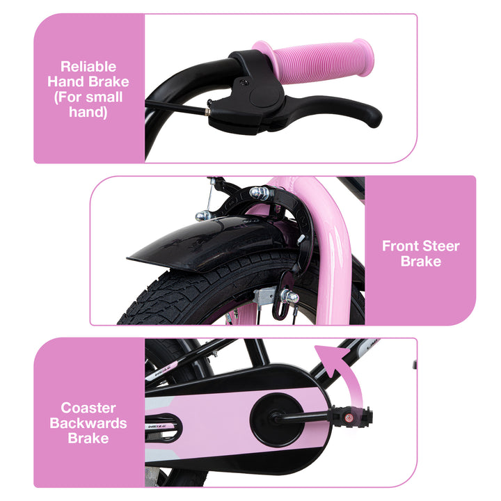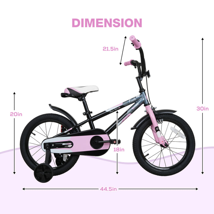 • Hykolity Kids Bike Boy Girl Bicycle 16 inch for Children Age 4-6 Height 38-48" Child Sport Bike BMX Handbar includes Training Wheel Black Pink