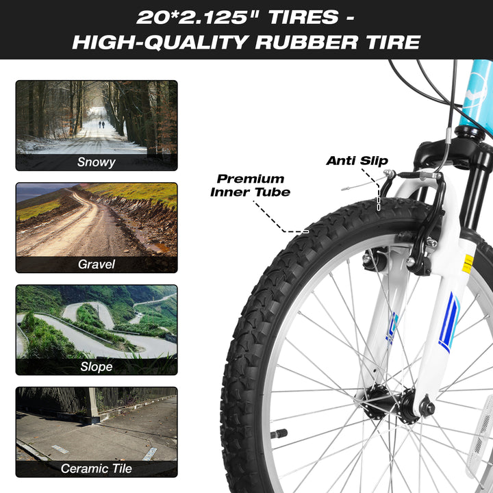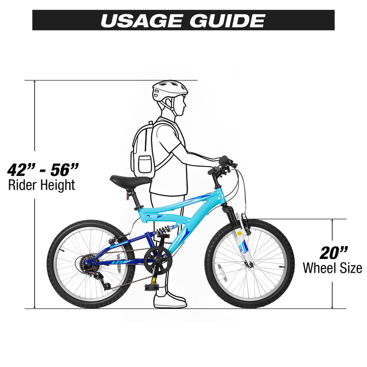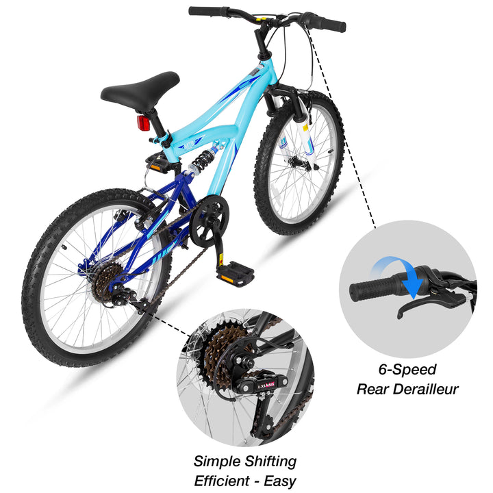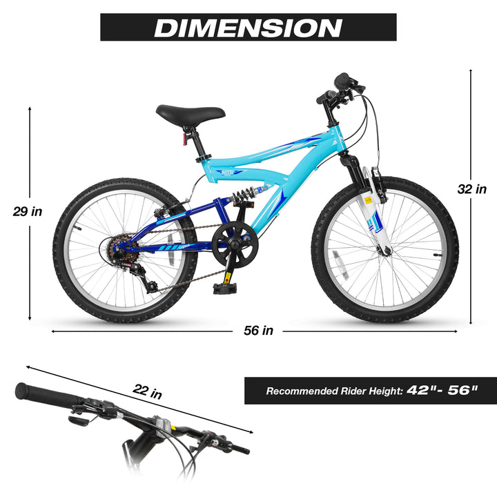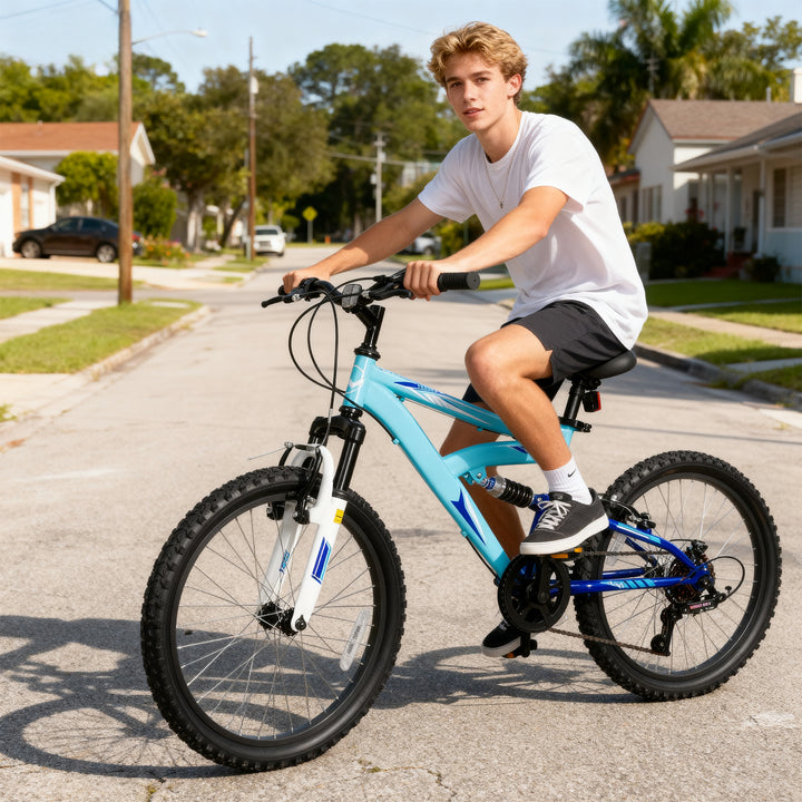• Hykolity Kids Mountain Bike 20 inch MTB Bicycle Age 6-12 Years Height 42-56 in Tween Cycling Full Suspension Sport Outdoor Bikes - Aqua Blue