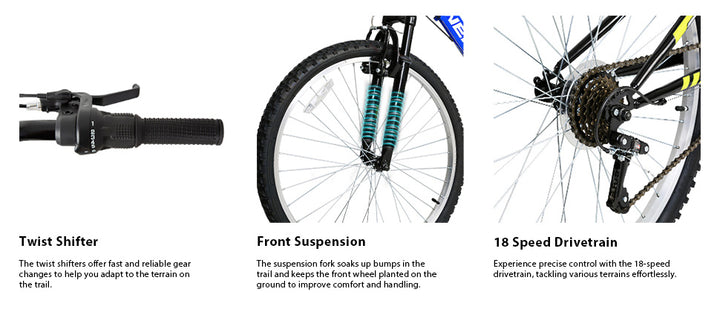 Easily switch gears with 18-speed twist shifters and a rear derailleur, giving you the control you need to tackle hills, rough terrain, or casual rides on the road. This adult sport bike is built for versatility.