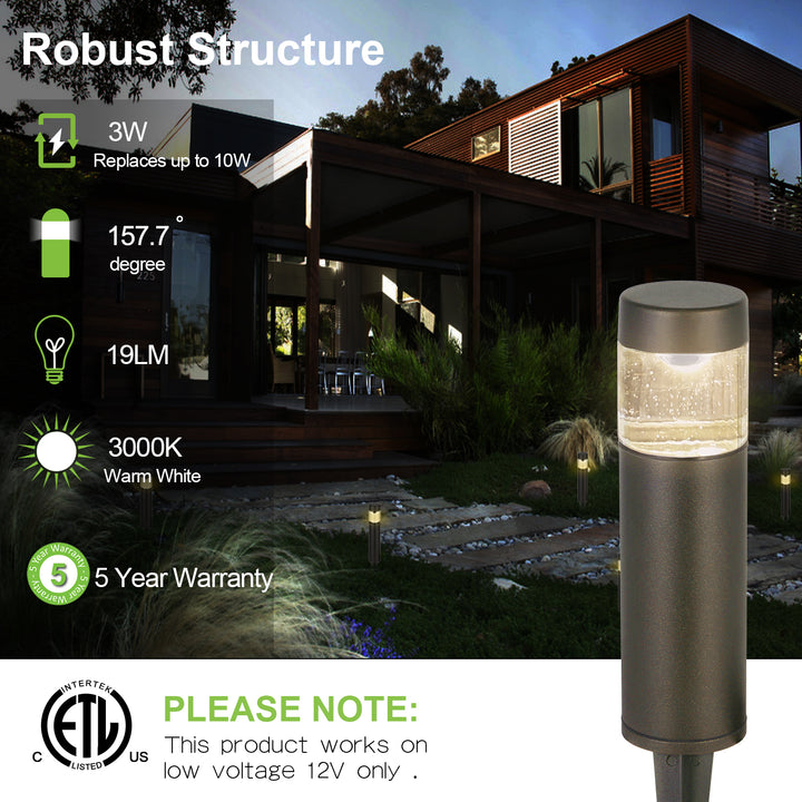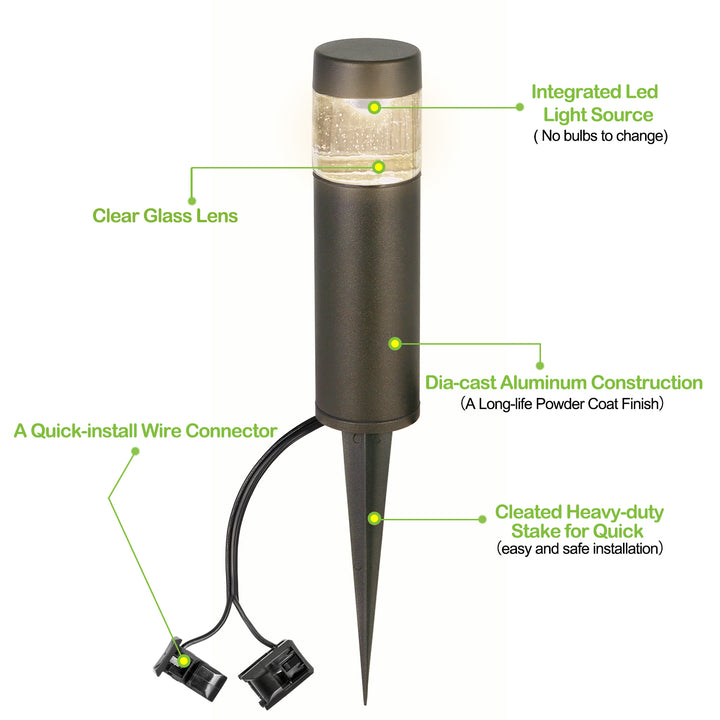 I was surprised by how well packaged these lights are and by the heavy duty construction. Even the stakes are metal. The lights are bright, beautiful and serve as both pathway and accent lighting. I initially wanted a set of lights with replaceable bulbs, but these seem to be great value for the money. Time will tell if the built-in LEDs last, but I am pleased so far.