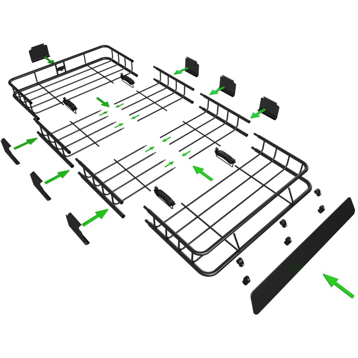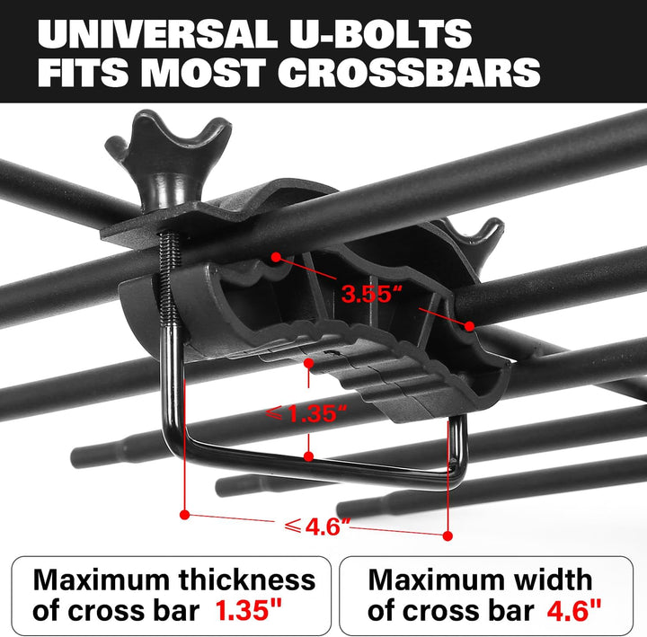 Assemble in minutes — the pre-welded frame ships in four sections and mounts easily to most crossbars using the included 6 U-bolts and universal hardware. Be sure to check your vehicle’s dimensions and compatibility before purchase.