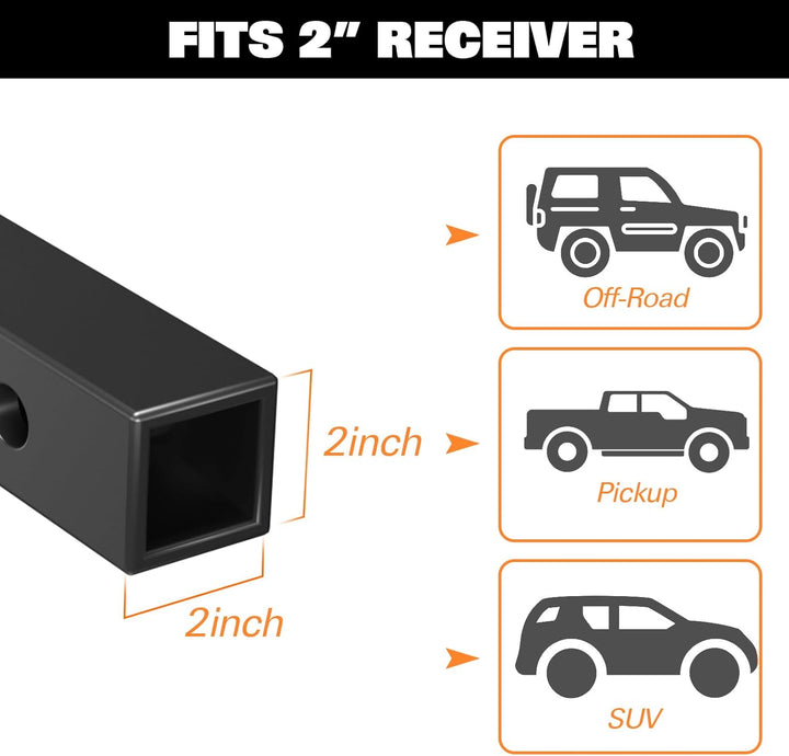 Compatible with any standard 2-inch receiver hitch. Installs at the rear of your vehicle for quick setup.