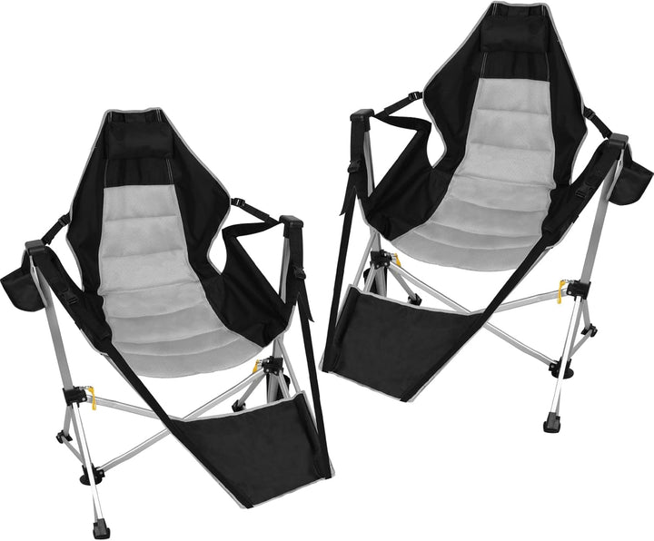 • Romswi 2-Pack Aluminum Hammock Chair with Footrest, Oversized Portable Folding Swinging Chair with Adjustable Back & Seat, Lightweight Rocking Camp Chair Supports 440lbs for Outdoor, Patio - Black