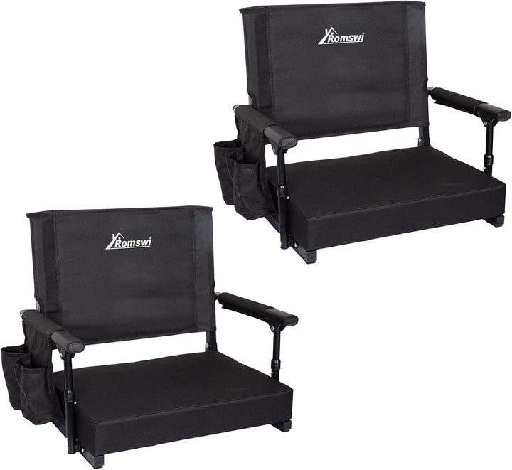 • Romswi 2-Pack Stadium Seats with Back Support & Armrests, Lightweight Bleacher Chairs with 2 Cup Holders, Portable for Football Games & Events, Black