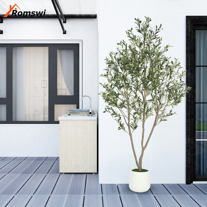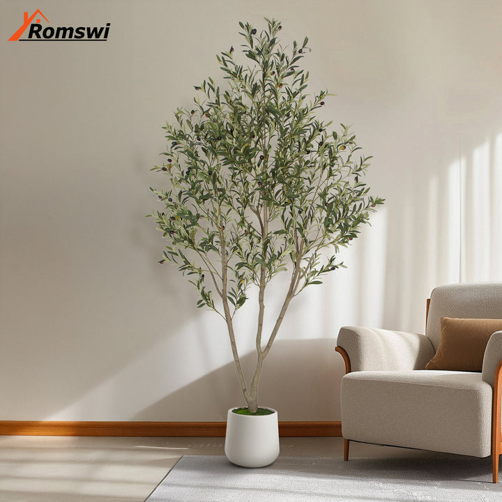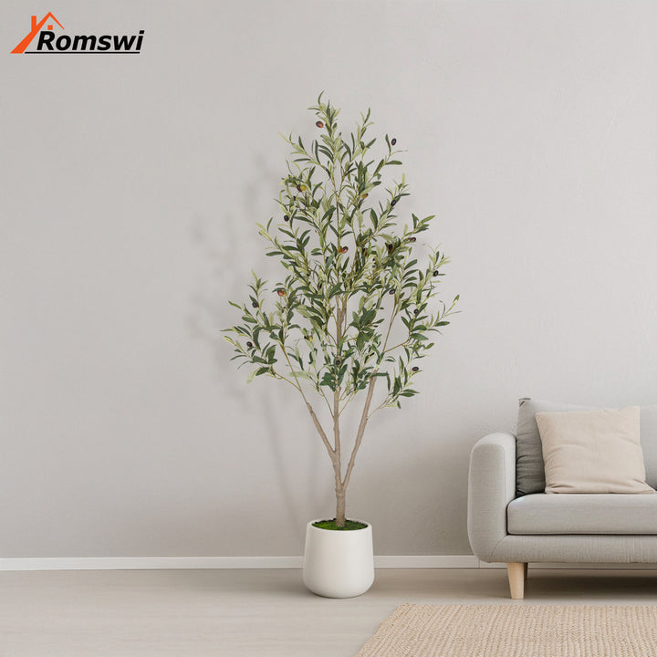 Romswi Olive Faux Tree, 5ft/6ft/7ft Tall Artificial Olive Tree with White Tall Pot, with Natural Leaves Lifelike Fruits for Home Office Decor Indoor
