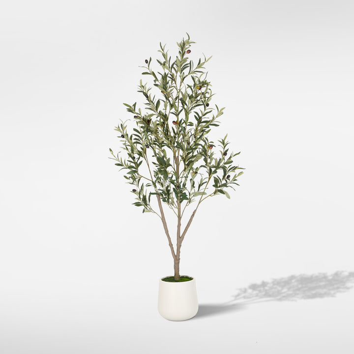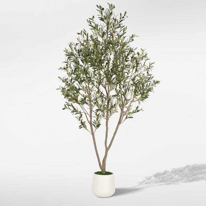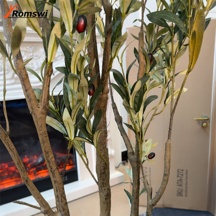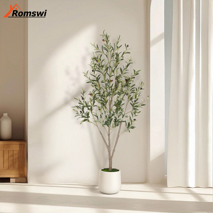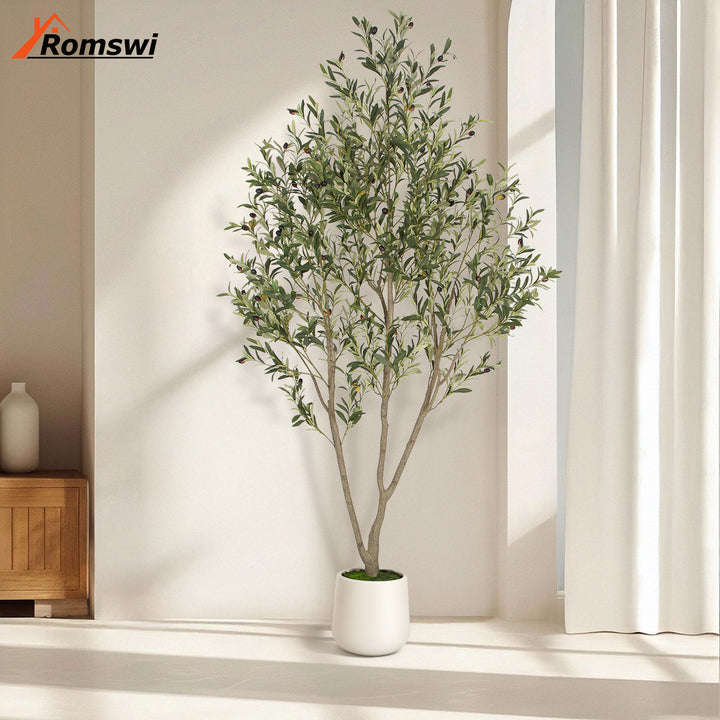 • Romswi Olive Faux Tree, 5ft/6ft/7ft Tall Artificial Olive Tree with White Tall Pot, with Natural Leaves Lifelike Fruits for Home Office Decor Indoor