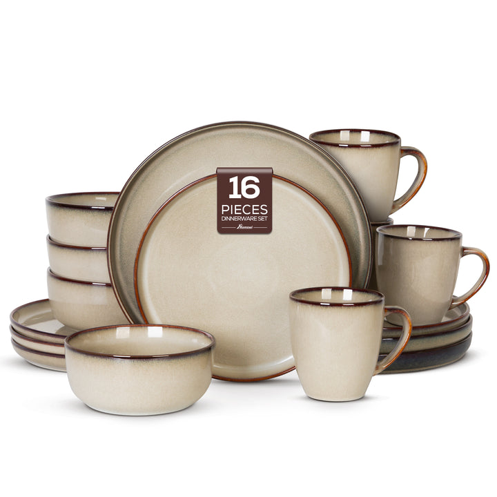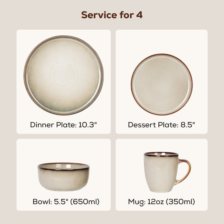 This 16-piece ceramic dinnerware set includes: