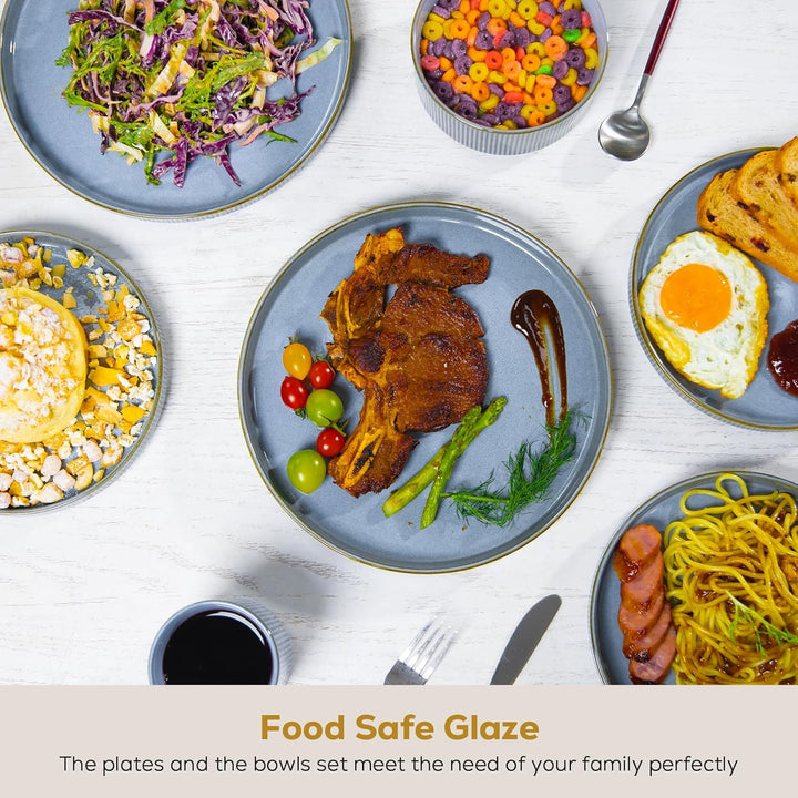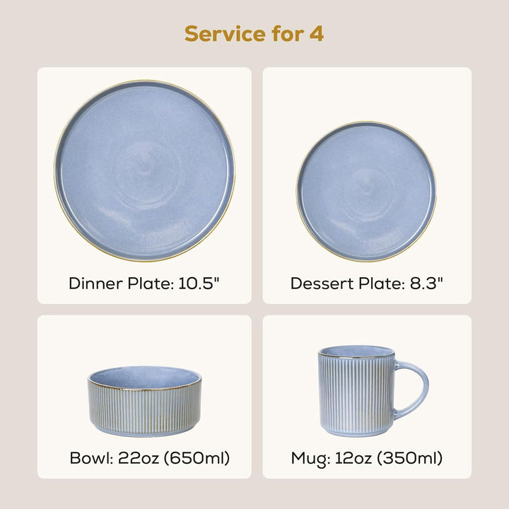 • Romswi Dinnerware Set for 4, 16Pcs Stoneware Plates and Bowls Sets with Mugs, Chip & Scratch Resistant Dish Set, Handmade Reactive Glaze Plate Set, Oven, Microwave and Dishwasher Safe, Gray Blue