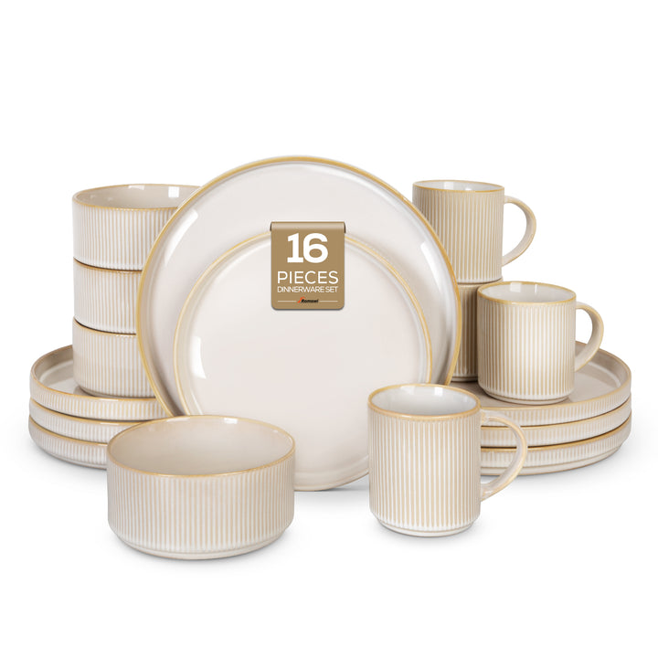 Romswi 18-Piece Stoneware Dinnerware Set — Handcrafted Elegance for Everyday Dining
