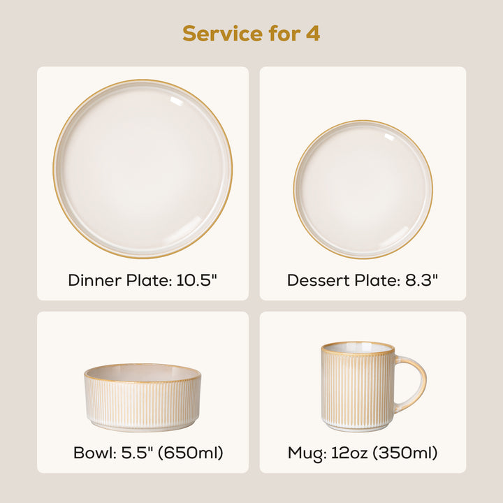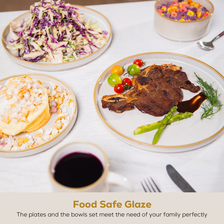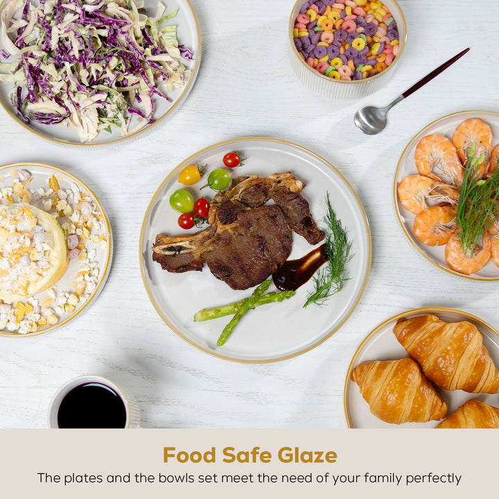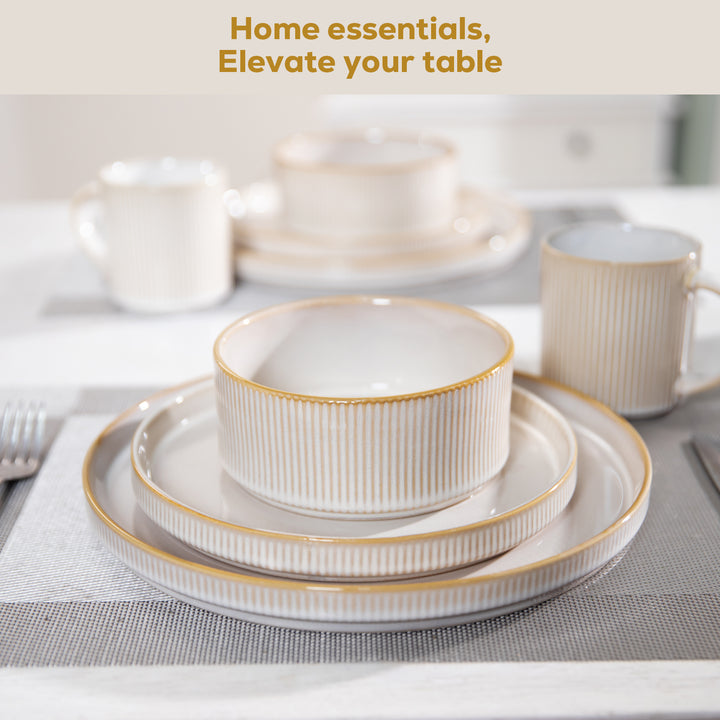 • Romswi Dinnerware Set for 6, 18Pcs Stoneware Plates and Bowls Sets, Chip and Scratch Resistant Dish Set, Handmade Reactive Glaze Plate Set, Microwave and Dishwasher Safe, Cappuccino White