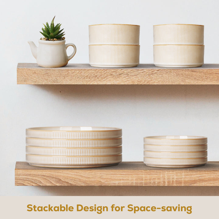 Precision grooves on the base allow for safe and efficient stacking, while ribbed edges add a clean, contemporary touch—combining function with timeless design.