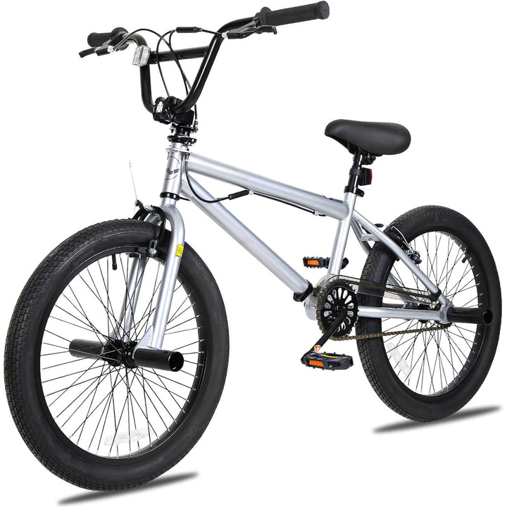 hykolity Freestyle BMX Bike 20 Inch Trick Bicycle for Kids Teen Adults Carbon Steel Frame Bikes Ideal for Beginner to Advanced Riders Black & Silver