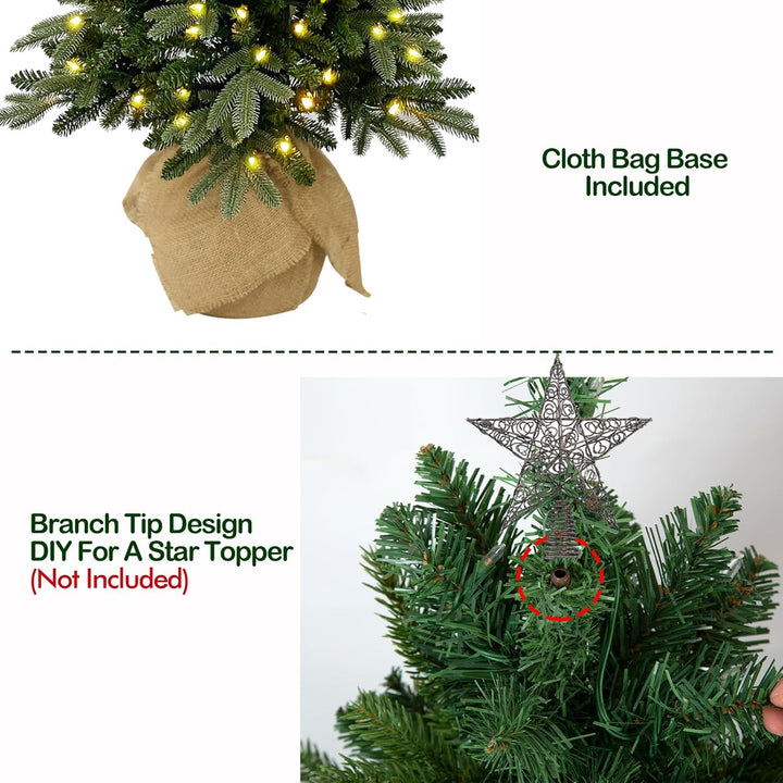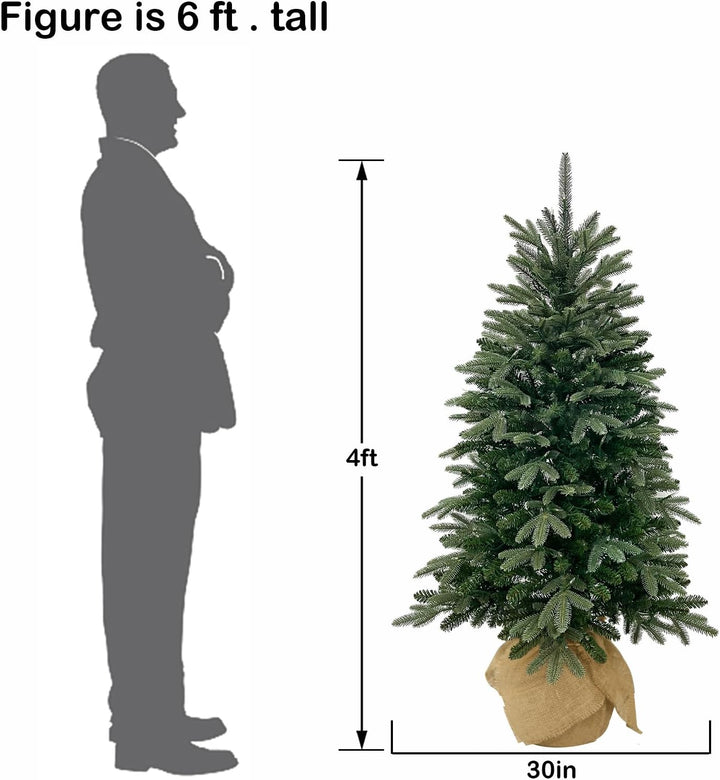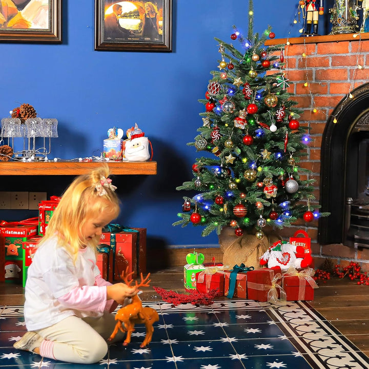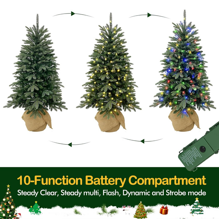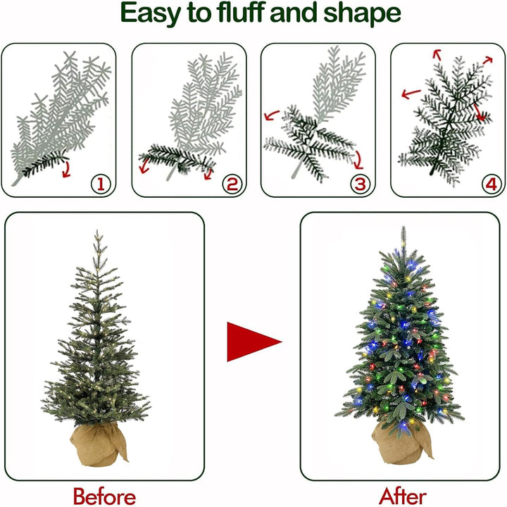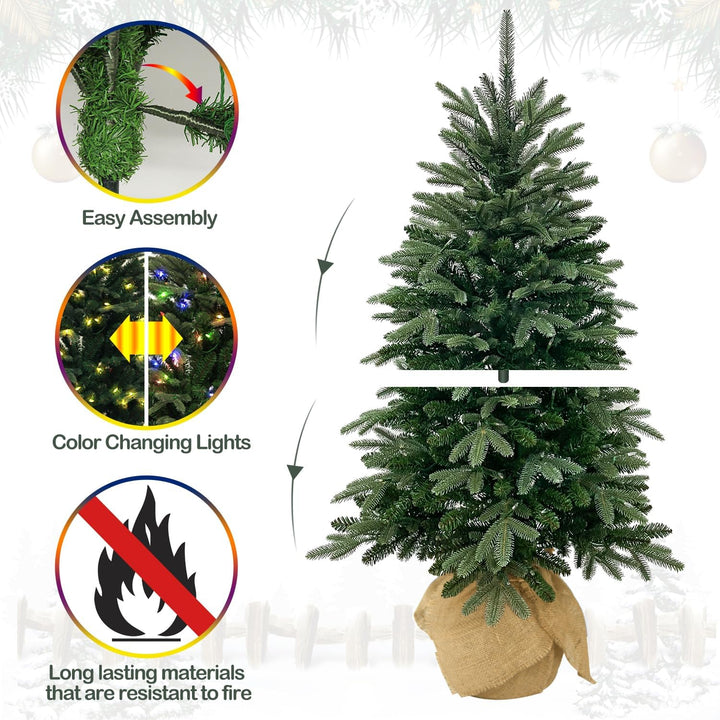 Hykolity 4 ft Prelit Christmas Tree with 150 Color Changing LED Lights, Artificial Decorated Burlap Christmas Tree with 643 PE & PVC Branch Tips, 10 Color Modes