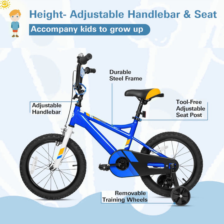 • hykolity 16 inch Kids Bike Children Bicycle for Boy 4-6 Years Old Cycling Kiddo Height 38-48 inch Coaster Brakes Include Training Wheel Blue