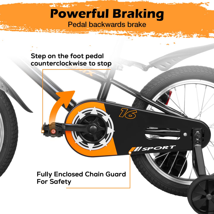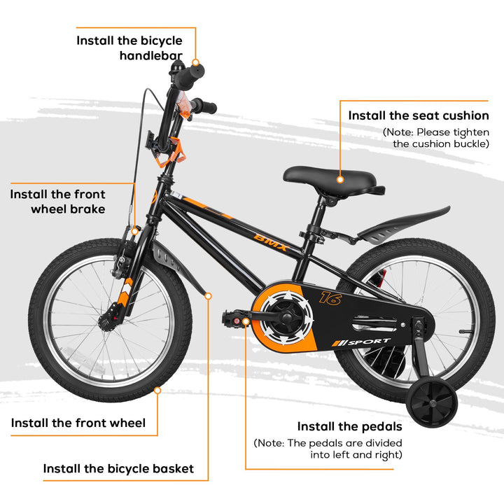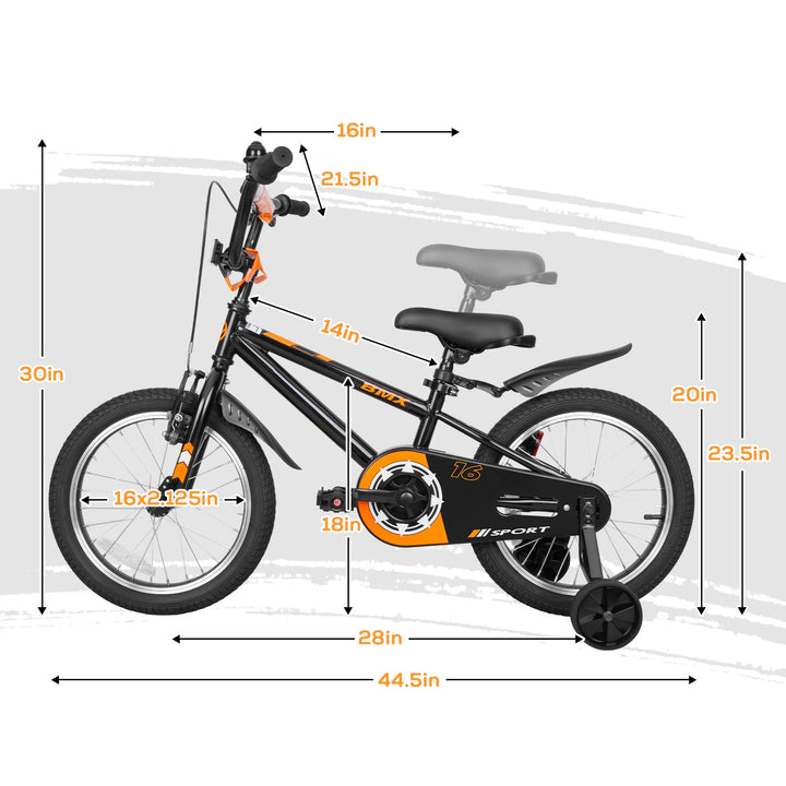 Get your child rolling on this fun and safe 16-Inch Kids BMX-Style Bicycle, specially designed for young riders aged 4, 5, or 6 years old with a height range of 43 to 49 inches. This child sport bike is built for durability and confidence, providing the ideal platform for learning the joy of cycling.