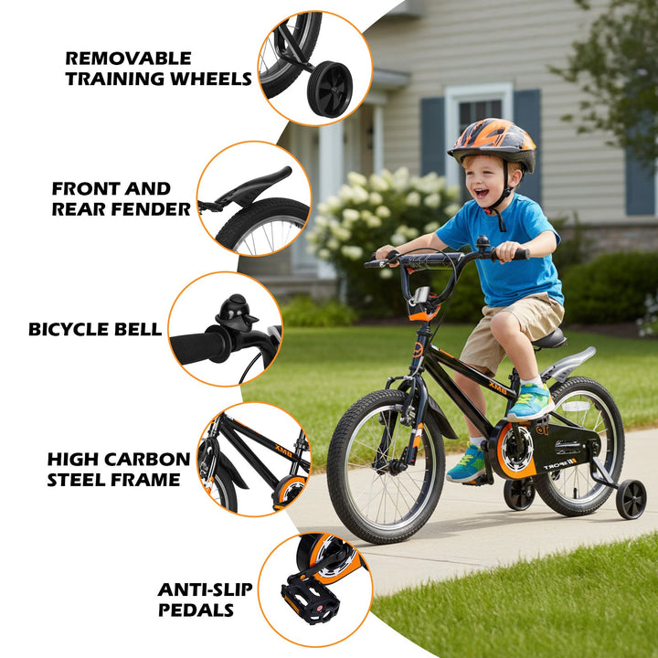 Hykolity 16 Inch Kids Bikes Boy Girl BMX Bicycle Ages 4 5 6 Years Old Coaster Brake Sport Cycling Child Bike with Training Wheels Black