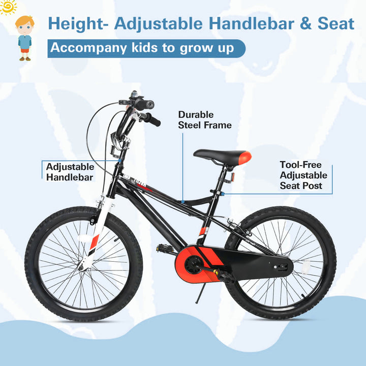 Hykolity 20" Kids Bikes with Adjustable Sanddle and Handler, Dual Caliper Brake, Cripsy Bell Mountain BMX Style Bicycle Youth Boys Girls
