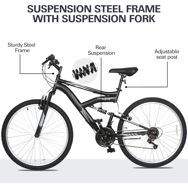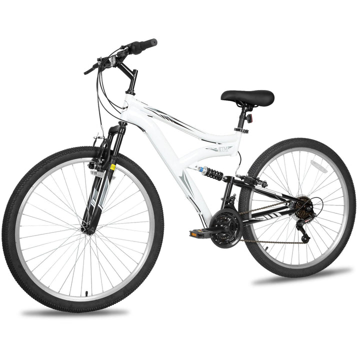 Enjoy a comfortable ride with the hykolity Bicycles 26"/27.5" Shocker Dual Suspension Mountain Bike. Durable steel dual