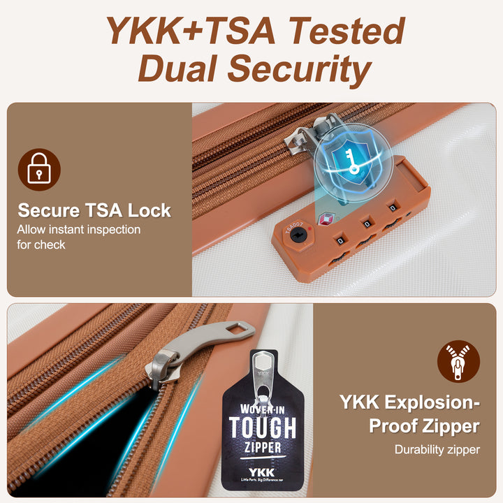 Security and ease of use are prioritized across the collection. Your belongings are protected by a TSA-approved dual locking system on every suitcase, ensuring safe inspection without damage. All bags utilize authentic YKK Zippers for superior durability and smooth, secure closures. Maneuvering is effortless with a sturdy, lightweight 3-level aluminum handle and quiet, 360° dual spinner wheels, allowing you to glide smoothly and silently through terminals and tight spaces.