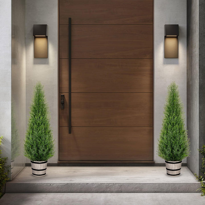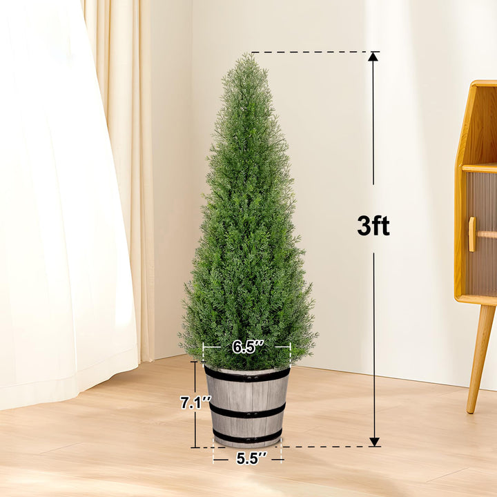Hykolity Artificial Cedar Topiary Tree, 3FT 4FT with Barrel Planter, Faux Pine Shrubs Plant, Outdoor Indoor Home Decor Realistic Fake Plants, 2-Pack