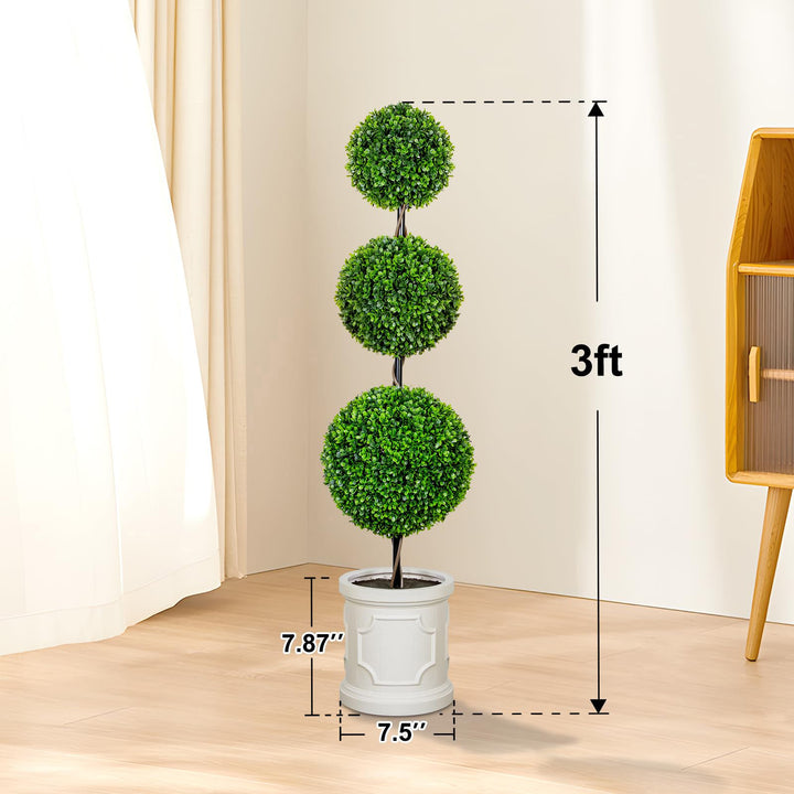 • This item: Hykolity Artificial Triple Ball Topiary Tree, 3FT 4FT with Classical White Planter,... $199.98