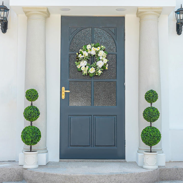 Add a little natural beauty to your home or office with the elegant Triple Ball Topiary tree, pre-assembled in a white Roman-style planter for a timeless decorative touch. Featuring three layers of lush, lifelike greenery, this artificial topiary offers vibrant color and realistic texture that mimics natural foliage. The sturdy planter allows for easy placement, while the maintenance-free design requires no watering, pruning, or sunlight. Whether displayed in entryways, living rooms, offices, or retail spaces, this classic piece maintains a fresh and vibrant look all year long. With its sophisticated design, it also makes a thoughtful gift for housewarmings, holidays, or special occasions.