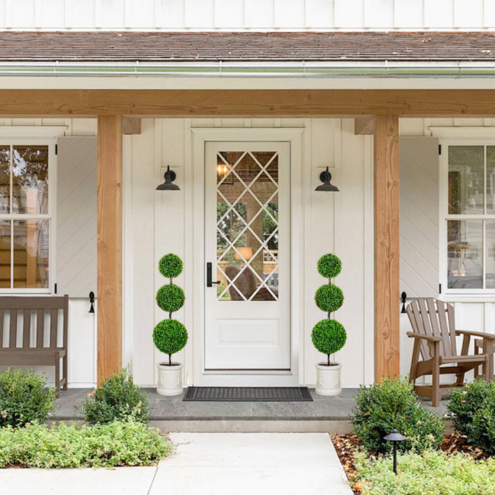 • Hykolity Artificial Triple Ball Topiary Tree, 3FT 4FT with Classical White Planter, Faux Shrubs Plant Realistic, Indoor Outdoor Home Decor, 2-Pack