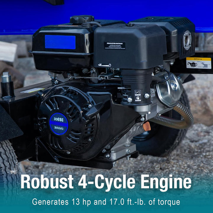 • Powered by a 13 HP 389cc OHV engine that provides 17 ft-lb of torque for reliable performance.