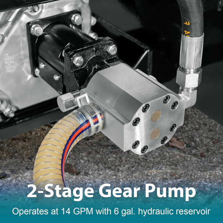 • Operates with a 14 GPM hydraulic system and a 6-gallon hydraulic reservoir, supporting continuous use without overheating.