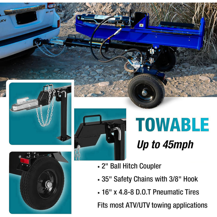 • Hykolity Gas Log Splitter Full Beam 40 Ton Auto Return Horizontal/Vertical Hydraulic 13HP Engine Portable Rapid Cycle Steel Wedge Firewood Splitting Machine with Towing Connections
