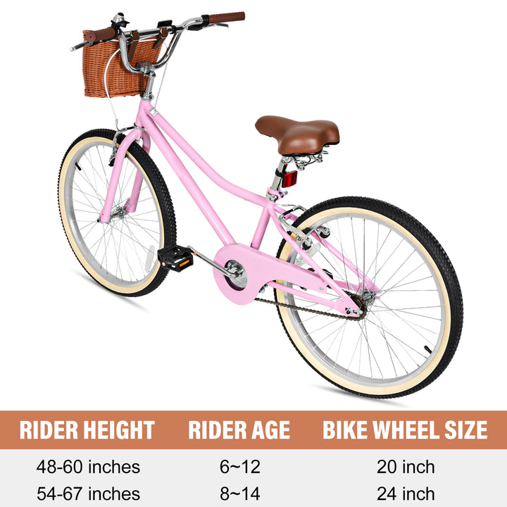 Hykolity Kids Bike 24 Inch for 8-14 Years Old Girls Bicycle with Basket and Kickstand, Tween Retro Style Childrens Bike for Teen Girls, Pink