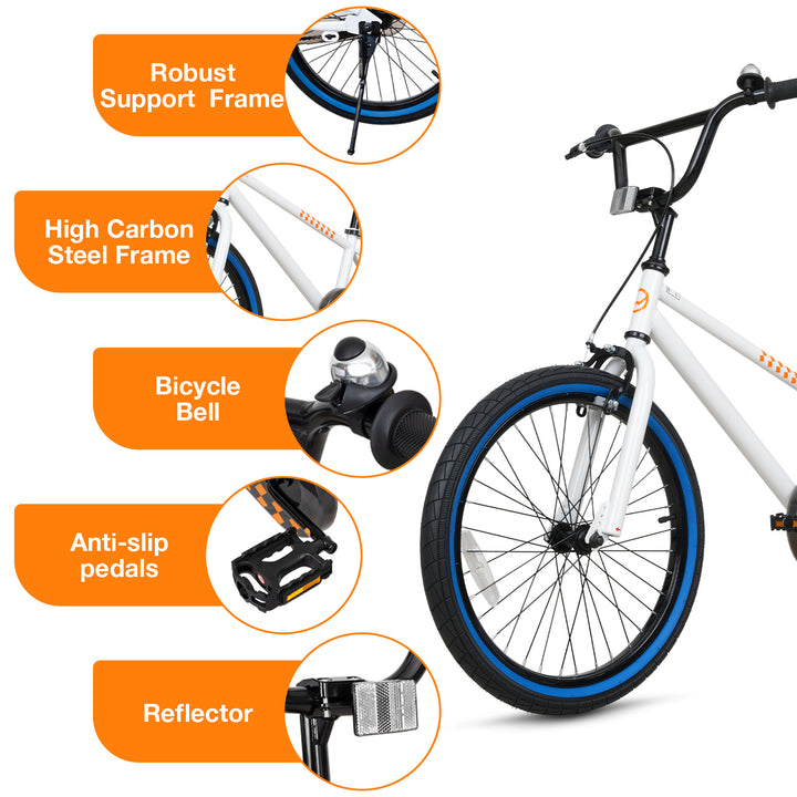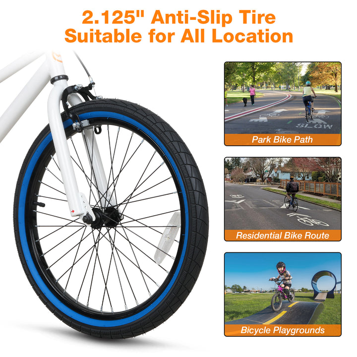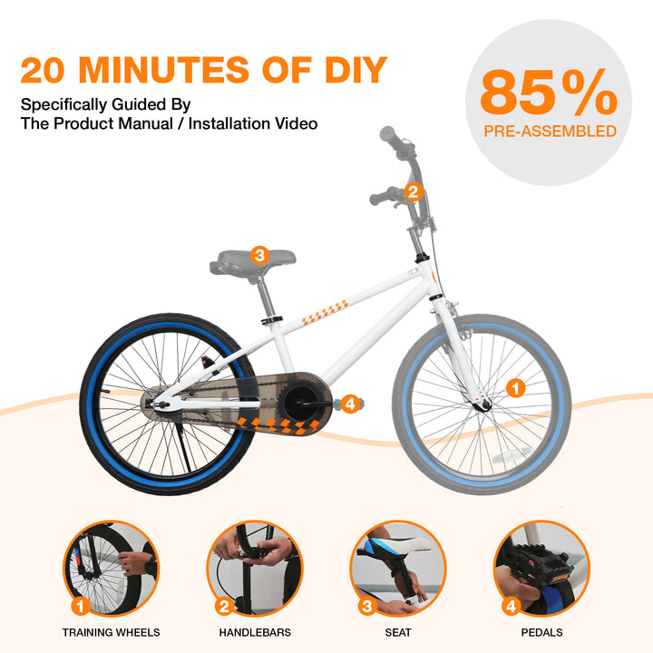 Hykolity Kids Bike Boy Girl Bicycle 20 inch for Children Age 6-12 Height 48-62" Child Sport Bike BMX Handbar includes Training Wheel White