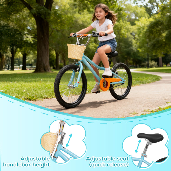 Hykolity Kids Bike Boy Girl Bicycle 20 inch for Children Age 6-12 Years Old Height 48-62 in Child Tween Sport Outdoor Bikes Front Basket Aqua Blue
