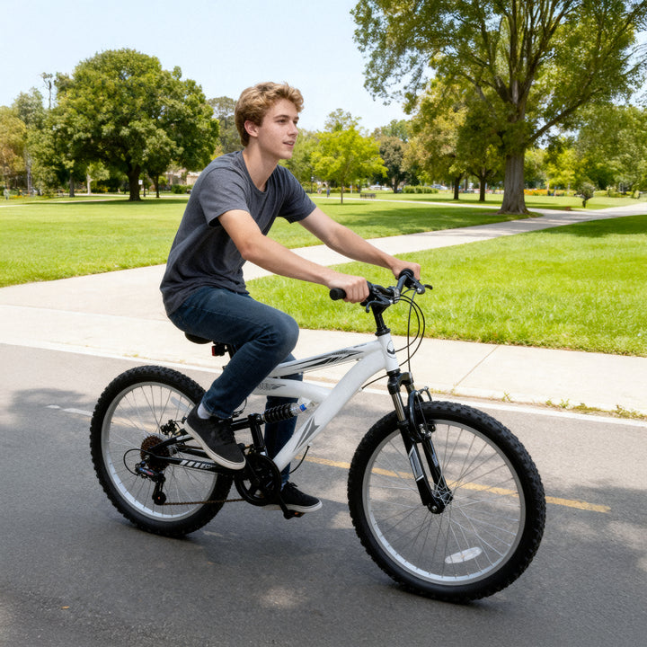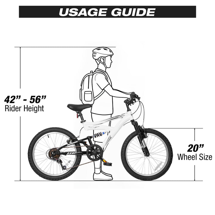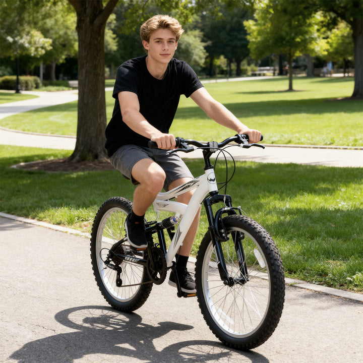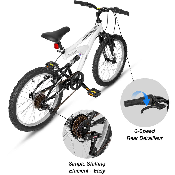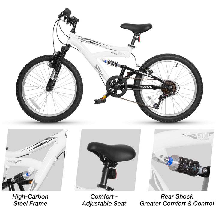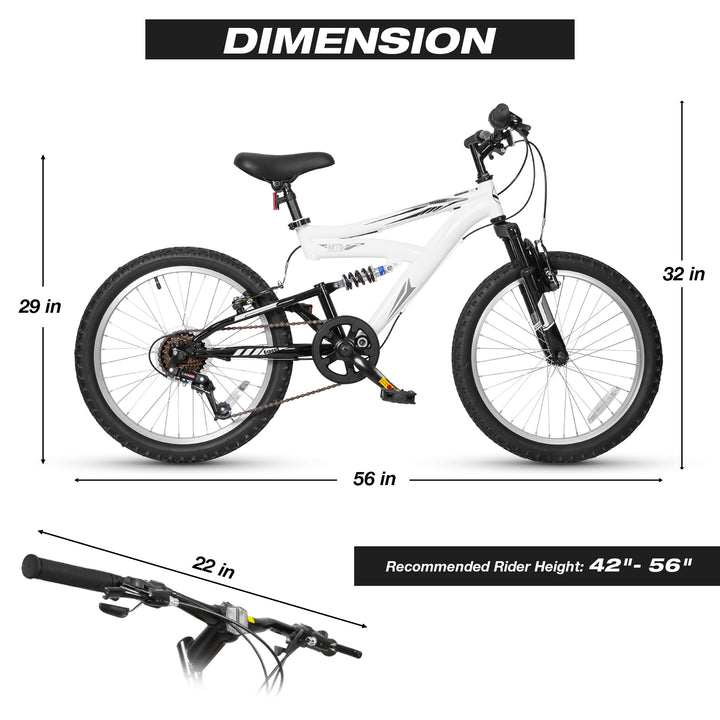 Hykolity Kids Mountain Bike 20 inch MTB Bicycle Age 6-12 Years Height 42-56 in Tween Cycling Full Suspension Sport Outdoor Bikes - Pale White