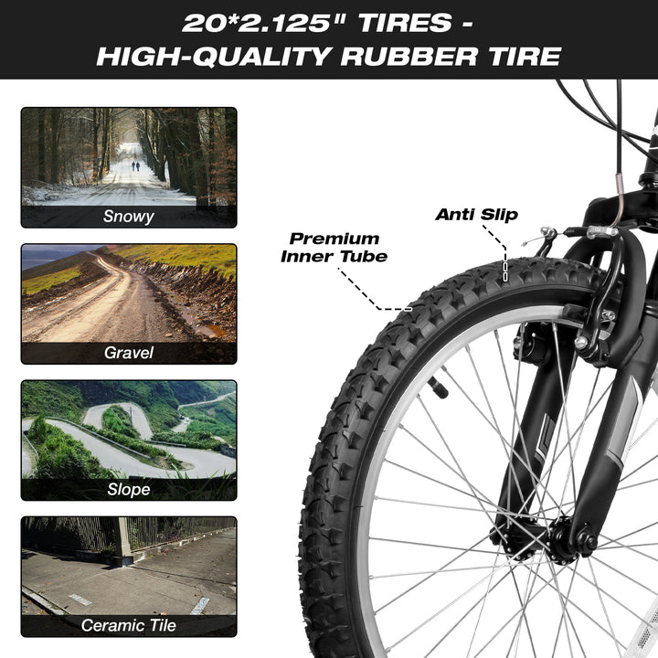 Empower your little explorer with this 20-inch kids' mountain bike (MTB), perfectly sized for boys aged 6–12 (fitting heights 42"–56"). Built with a supremely durable steel frame, this bike guarantees long-lasting safety and withstands the rough and tumble of off-road riding. The bike's low center of gravity and low standover height are designed to make mounting and dismounting effortless for junior cyclists. Experience superb control with the dual handbrake system (V-Brakes) and tackle inclines easily thanks to the reliable 6-speed drivetrain. Confidence is boosted by the wide, anti-slip 20" tires, which provide superior stability and grip on various trails. A comfortable, padded seat ensures that every ride, whether on the road or the path, is fun and enjoyable. This starter bike is the ideal upgrade for active kids seeking their next great adventure.