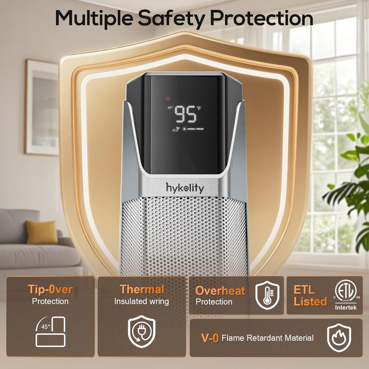 • All-around Safety - - Stay warm this winter with peace of mind. Our heaters for indoor use offers comprehensive protections, including V0 flame-retardant material, cool-touch housing,thermal insulated wiring, child lock, 45° tip-over protection and overheat protection, all certified by ETL.